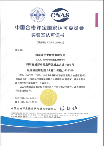 Sichuan Safety Testing Center Co.,LTD. 四川省中安檢測有限公司 版權所有 蜀ICP備15017687號